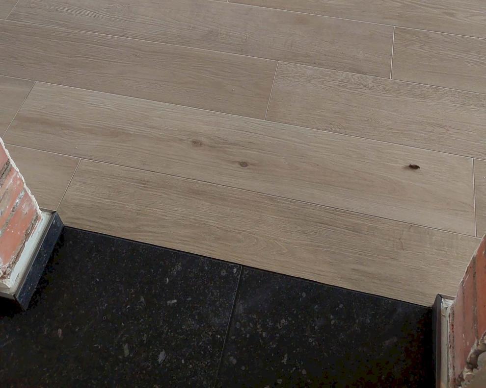 Vernieuwen van bestaande vloertegels met keramisch parkettegels zonder grote breekwerken.