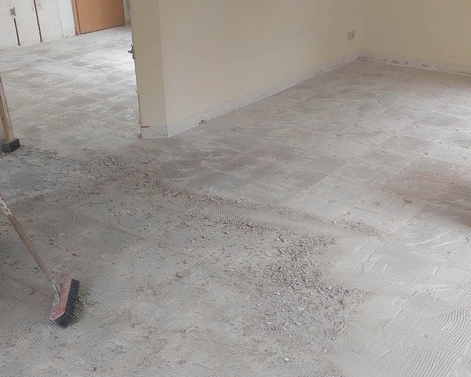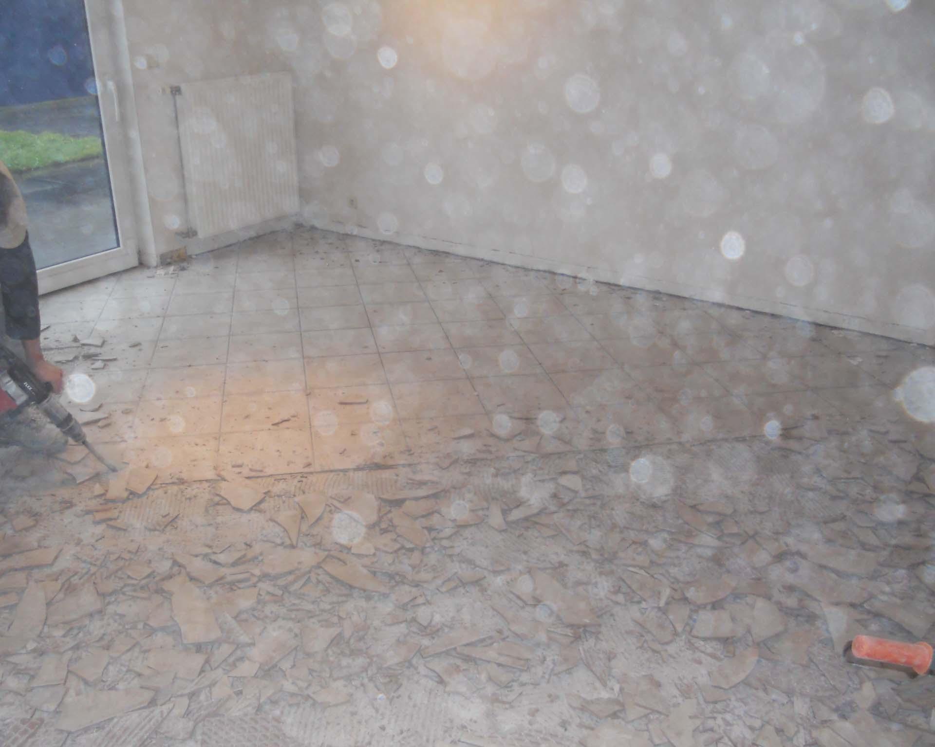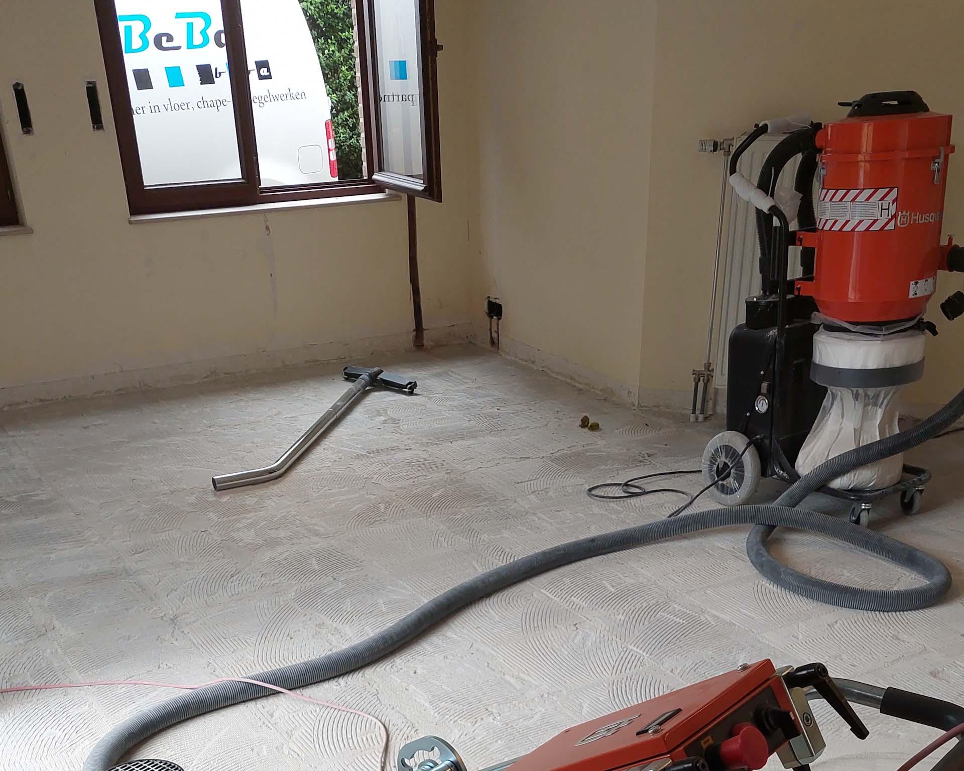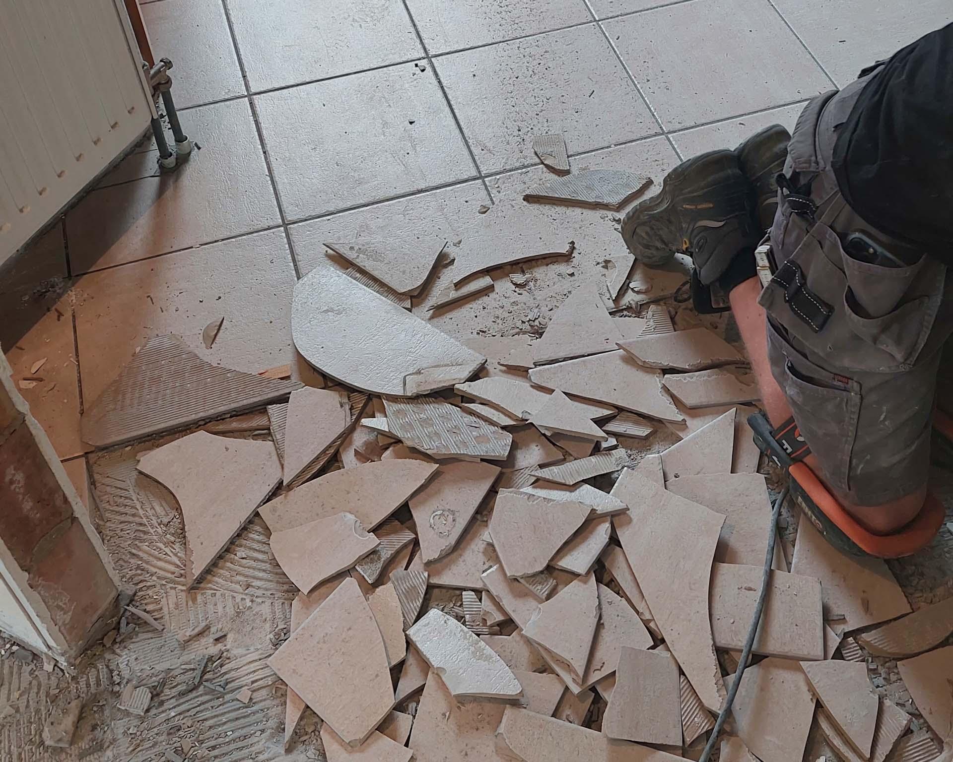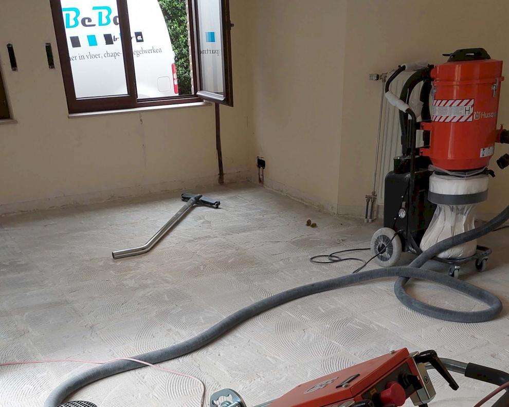 Na het verwijderen van de bestaande tegels en de oude tegellijm kan de vloer terug perfect geplaatst worden op een zuivere chape zonder gevaar voor loskomende tegels en dit alles op dezelfde hoogte als voordien!