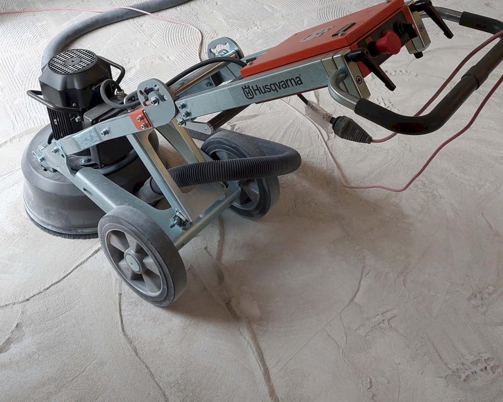 Bij BEBA bv hebben we een schuurmachine met speciale diamantschrapers voor het verwijderen van oude tegellijmen.