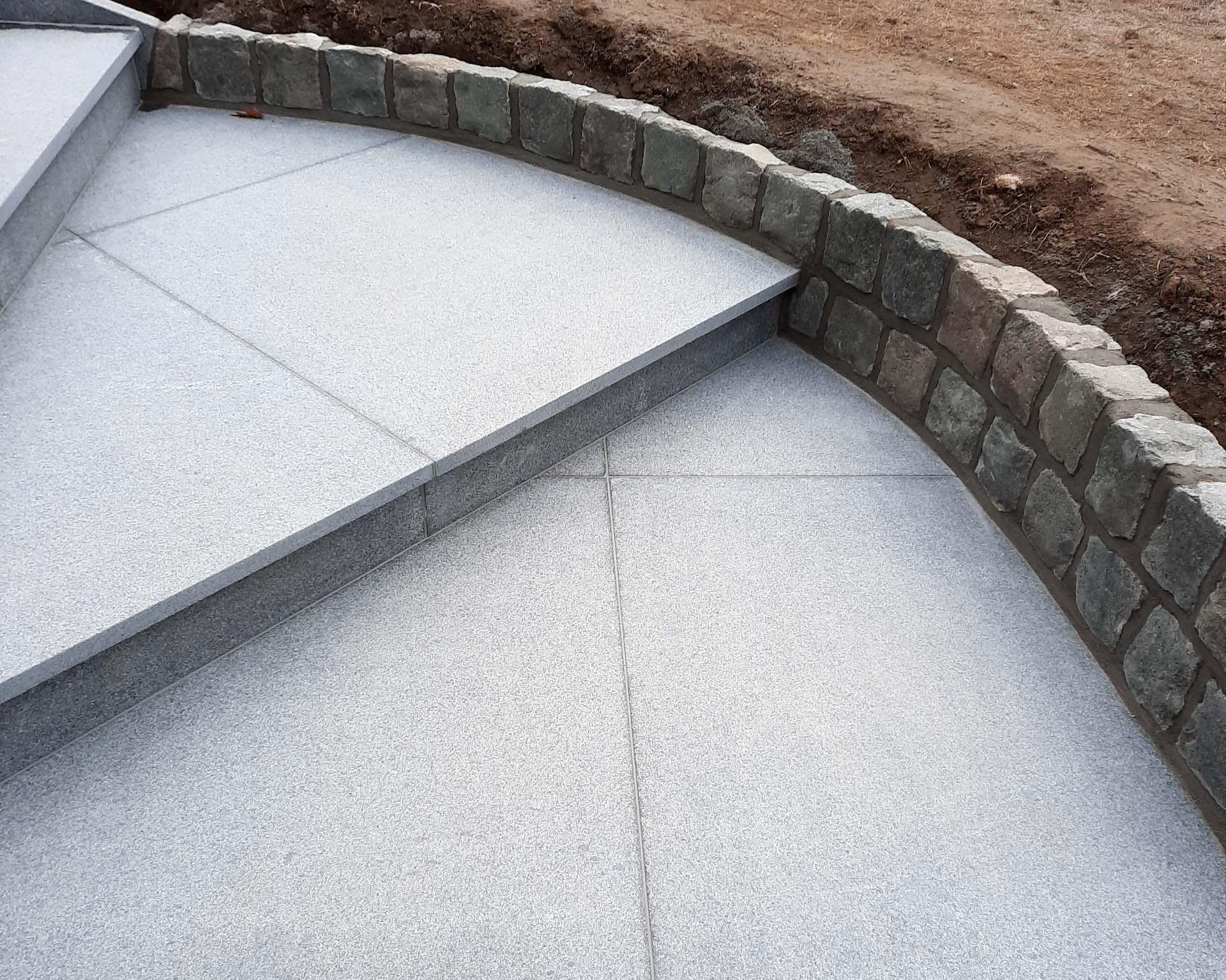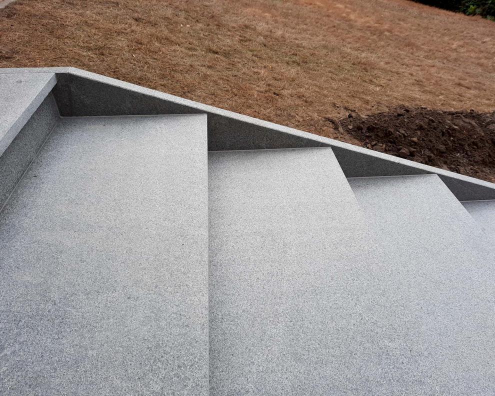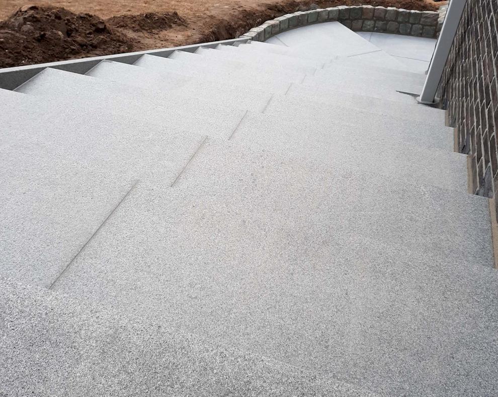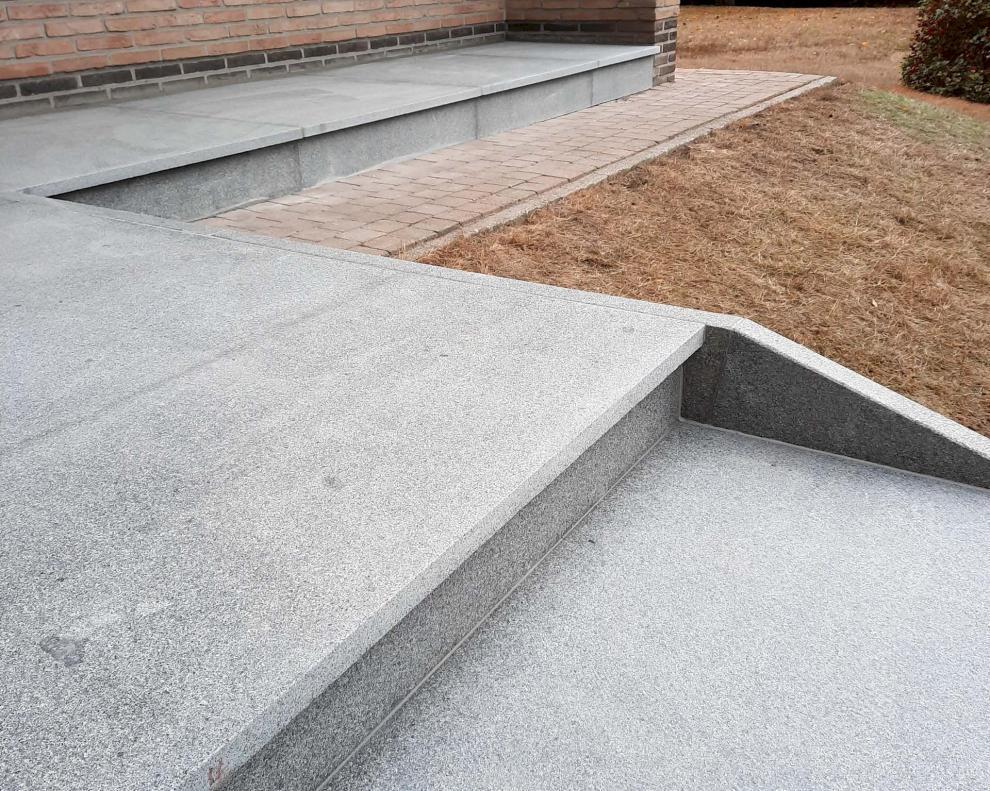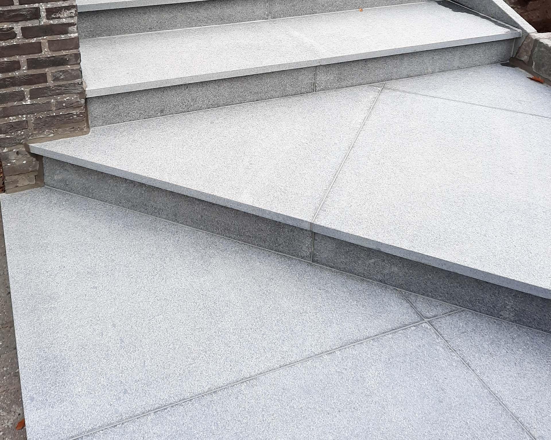 Het gaat om meer dan 20m² trap omdat deze zeer breed en diep is, bij natuursteen maatwerk zouden de kosten hoog oplopen.