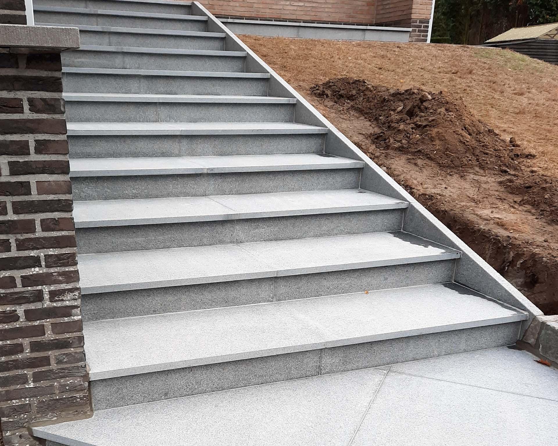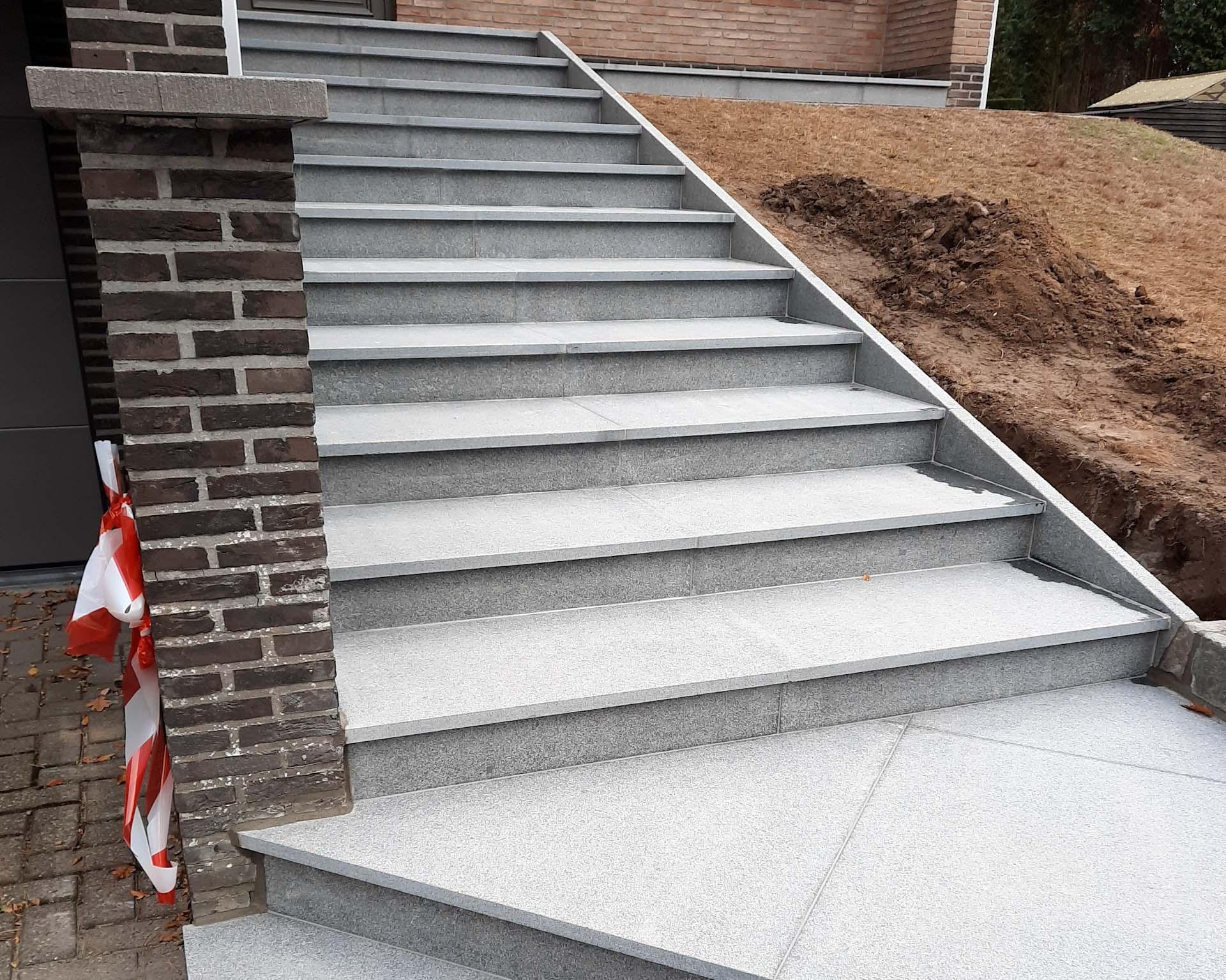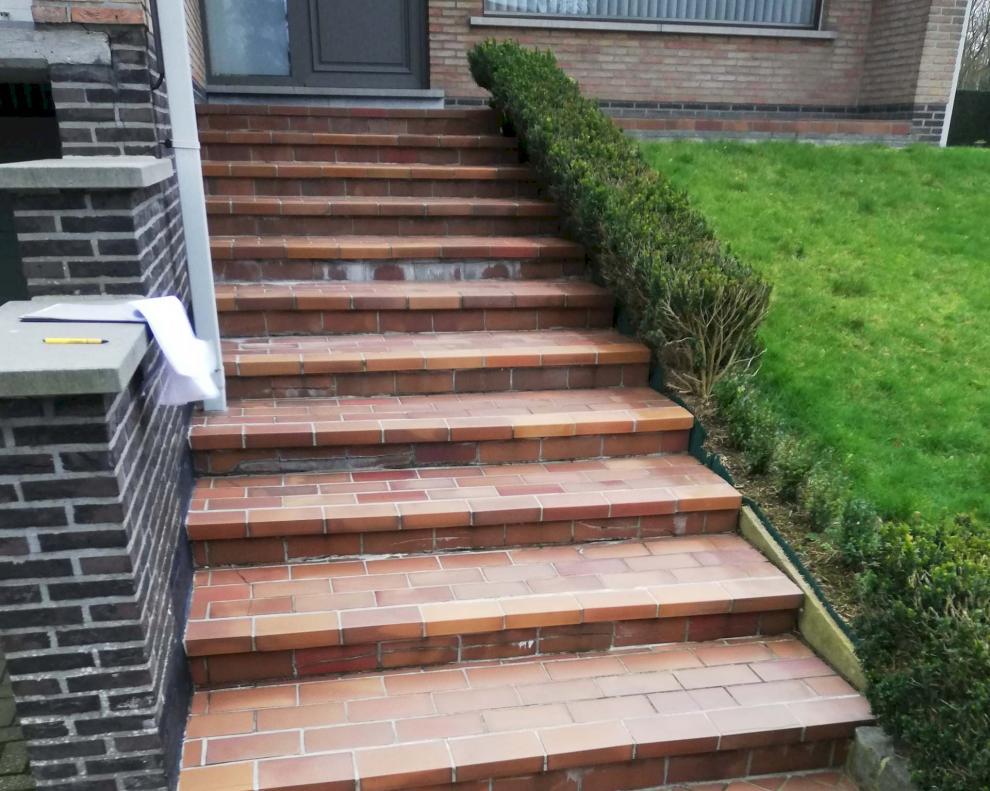 Buitentrap vernieuwen waarvan een groot deel van de tegels losgekomen zijn door vorst.